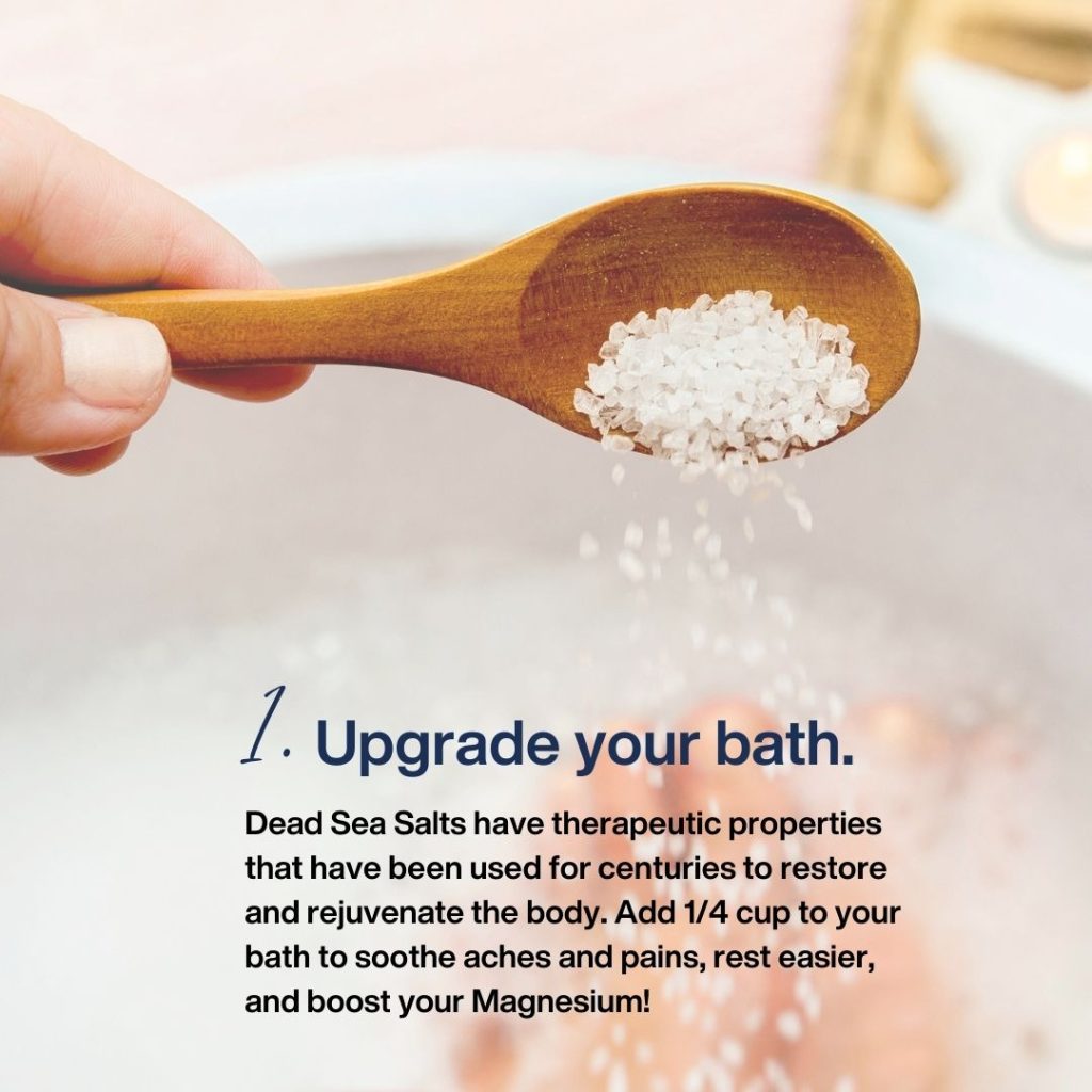 Dead Sea Salts…and seal in the moisture with a Lotion Bar or Peppermint Magnesium Lotion!