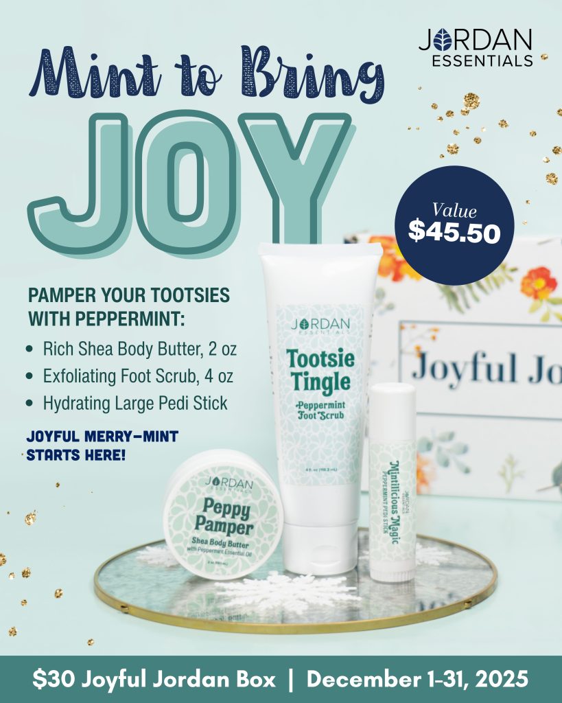 This month, unwrap a moment of pure peppermint bliss! The December Joyful Jordan Box delivers the perfect joyfully wrapped treat for tired feet — a refreshing, minty trio designed to pamper, polish, and rejuvenate from heel to toe.