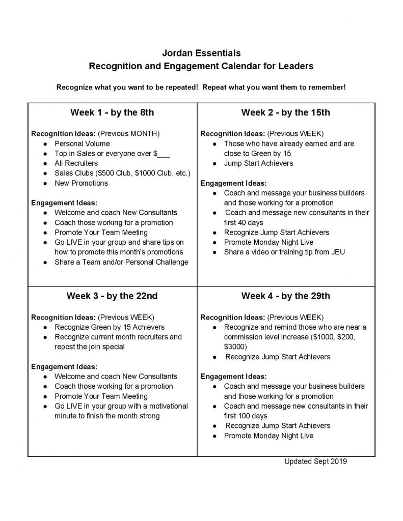 Recognition and Engagement Schedule